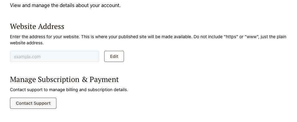 - From there you'll need to edit your hostname and enter the domain name that you have access to. Then click the Contact Support at the bottom of the page.